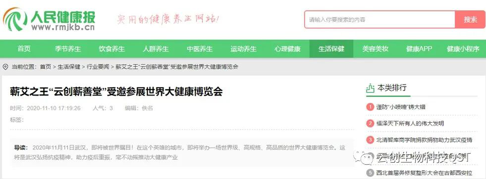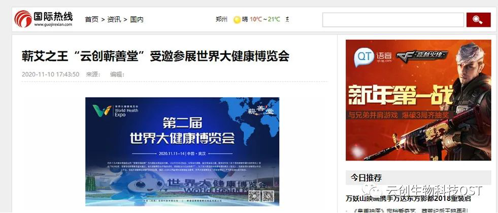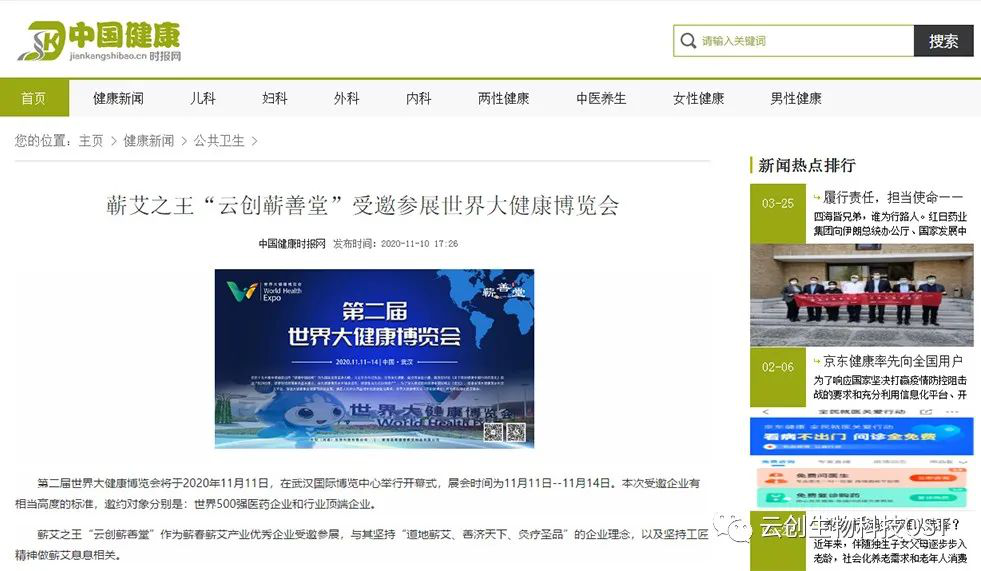 爆料:道地蘄艾“云創(chuàng )蘄善堂”受邀參展第二屆世界大健康博覽會(huì )引多家媒體報導